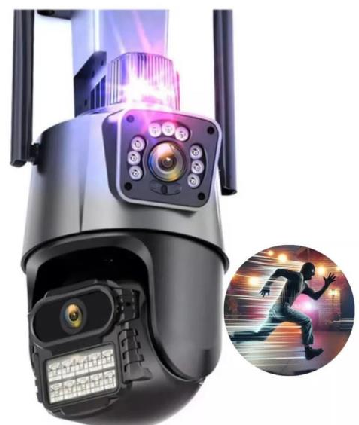 Dual 2MP (2 Megapixels), Dual-Screen Display, Manual Adjustable Bullet Camera Angle, PTZ Rotation (355° Horizontally, 90° Vertically), H.265 Compression, Smart Dual Light Source, Full-Color Night Vision, Wireless WiFi, Remote Access via Mobile Phone, AP Hotspot, Two-Way Voice Intercom, Voice Alarm, Smart Message Push, Supports Cloud Storage & TF Card Storage (External TF Card Slot, Max. 128GB), Smart Human Tracking, Equipped with Ethernet Port, Wall-Mountable & Ceiling Bracket Compatible, Optional Power Supply, 12V/2A, APP: Eseecloud