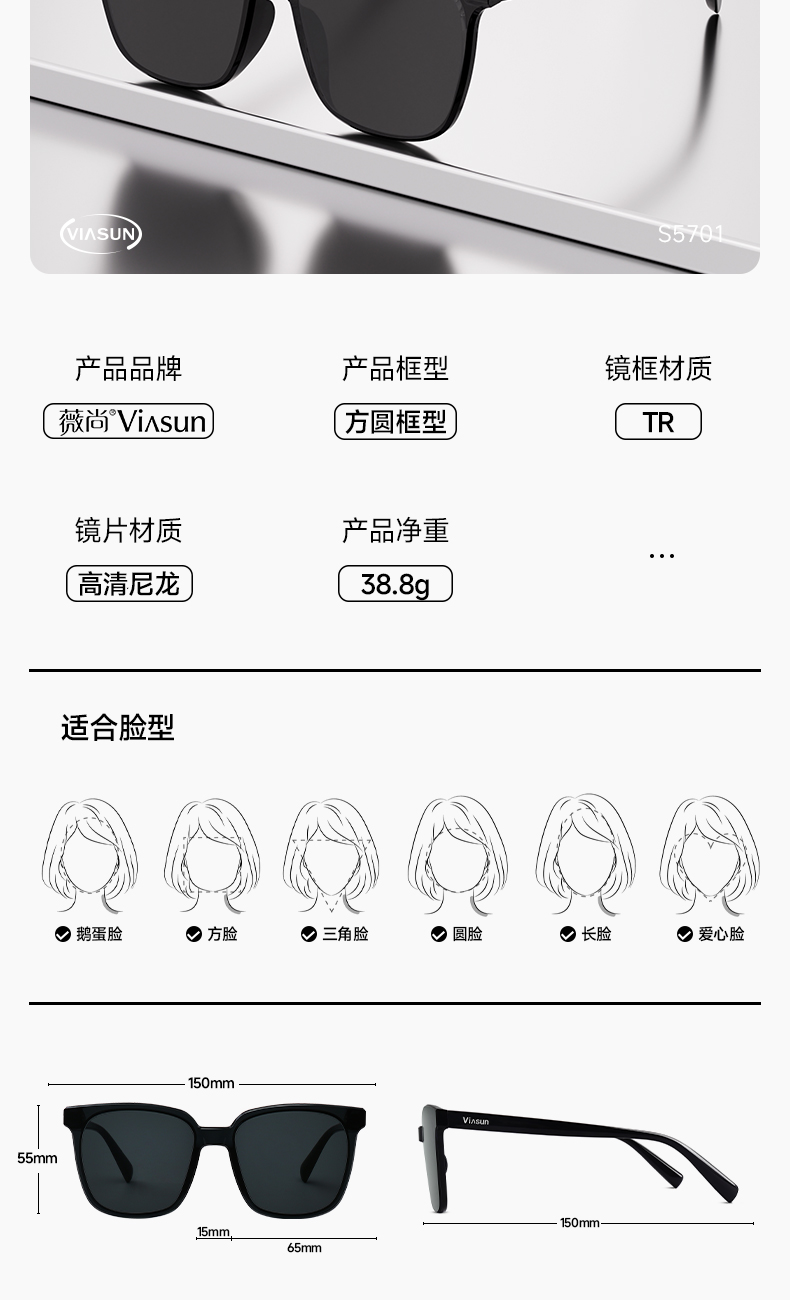 薇尚小方框偏光防紫外线太阳镜8059