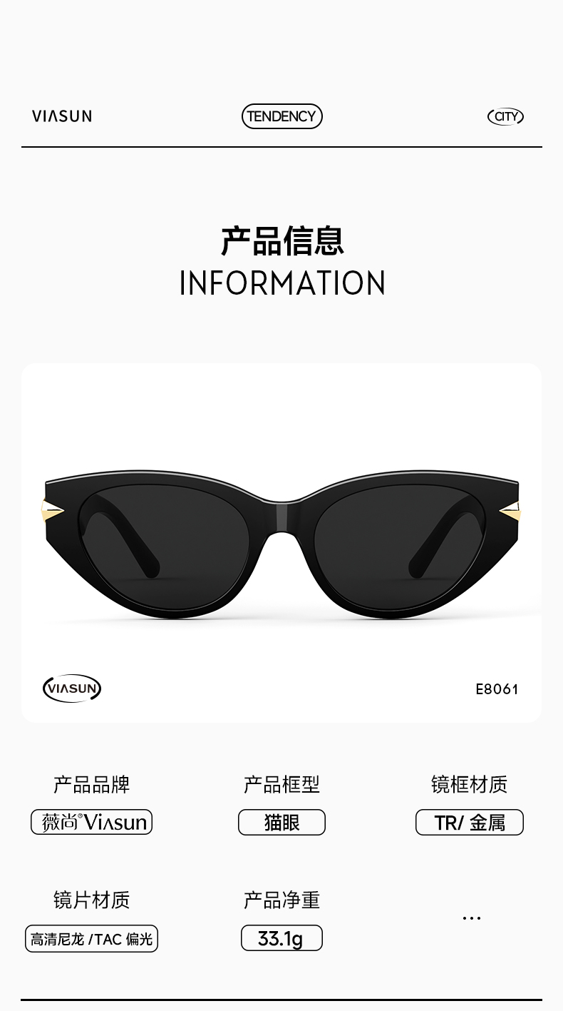 薇尚复古猫眼防紫外线太阳镜8058