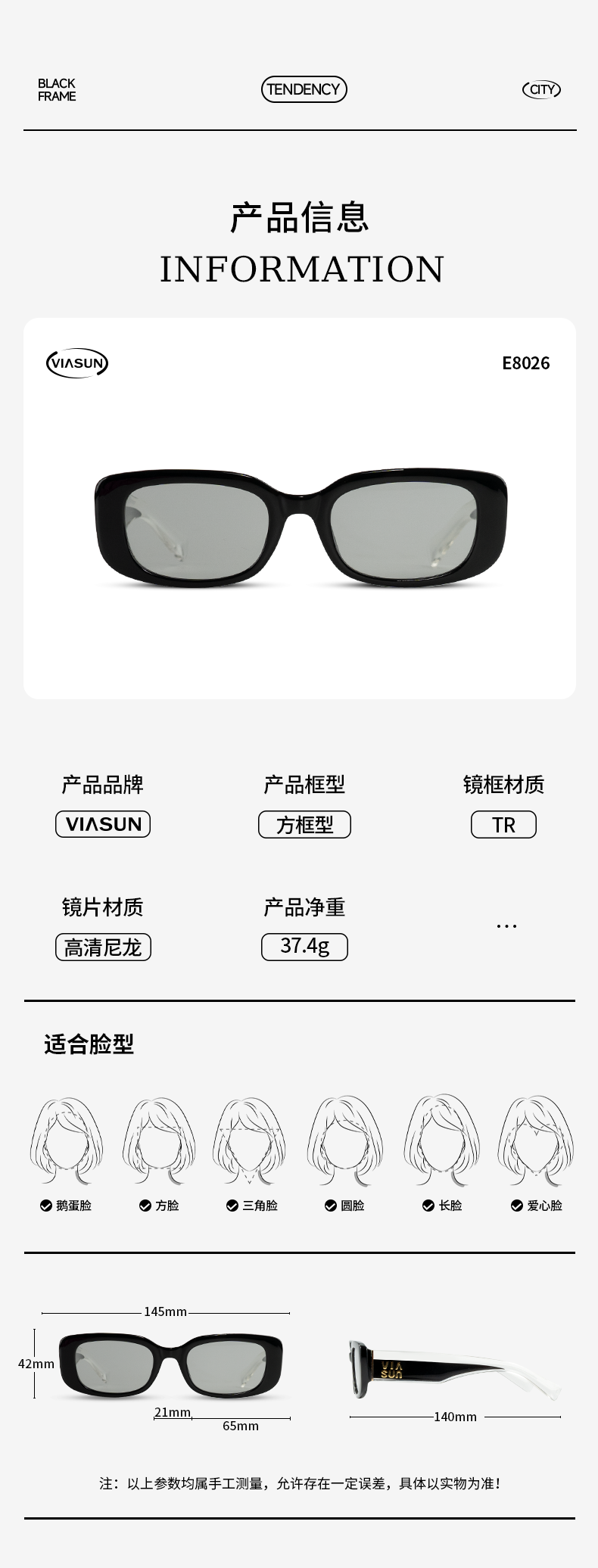 薇尚美式小框防紫外线太阳镜8005